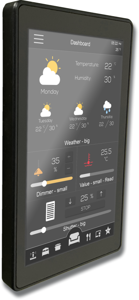 - V klientském rozhraní je možné vizualizovat analogové hodnoty (např.: údaje o počasí, jako je rychlost větru, venkovní teplota atd.) a odesílat je do skupiny KNX (například pro úpravu prahových hodnot).