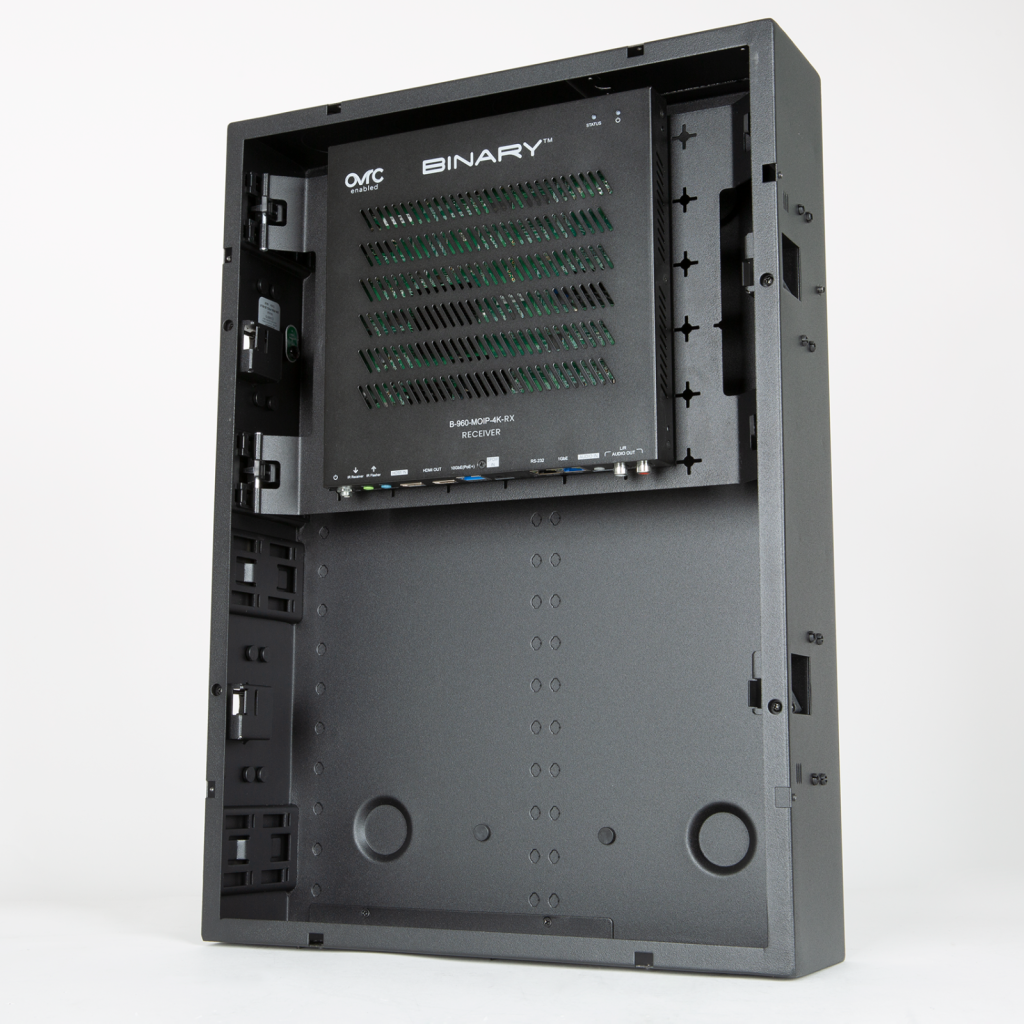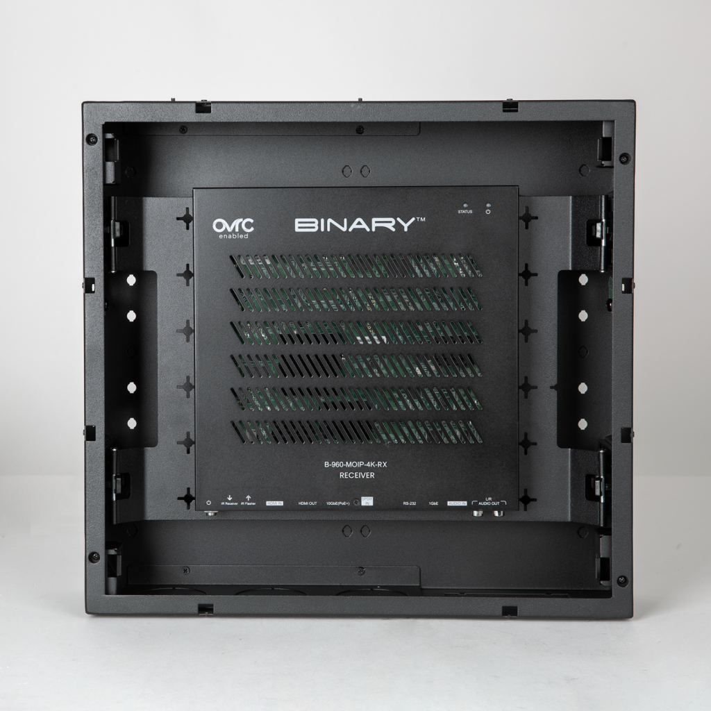 Přijímače Binary 960 řady 4K60 Media over IP představují další vývoj ekosystému MoIP. Při provozu v síti s kapacitou 10 Gb realizuje přijímač řady 960 distribuci videa 4K60 4:4:4 a pokročilé možnosti směrování zvuku. Přijímač 960 nativně poskytuje funkce Video Tiling a Picture-in-Picture pro kanály bezpečnostních kamer. Při spojení do systému s vysílači nebo přijímači MoIP MoIP a jedním ovladačem MoIP Controller získáte vysoce škálovatelný, flexibilní systém distribuce médií IP, který poskytuje vizuálně bezeztrátové video 4K HDR (HDR 60 Hz a HDCP 2.2) kompatibilní s HDCP.