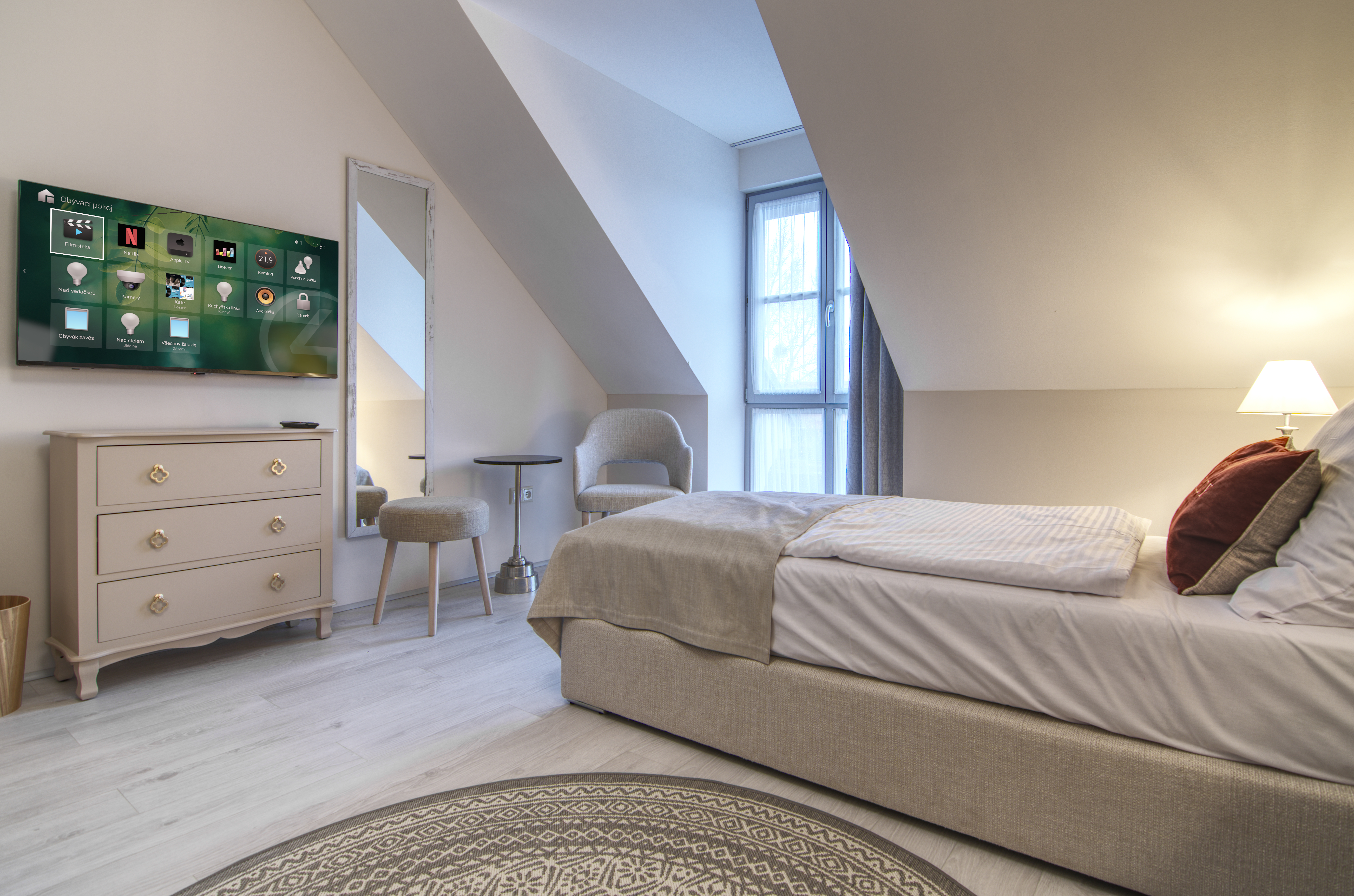 Celý systém elektroinstalace je postaven na otevřeném a celosvětově standardizovaném protokolu KNX. Díky tomu je celé řešení nejen stabilní a spolehlivé, ale i plně rozšiřitelné do budoucna. Majitel penziónu tak získal nejen moderní, ale i dlouhodobě udržitelné řešení, které může podle potřeby snadno upravit, doplnit nebo přizpůsobit.