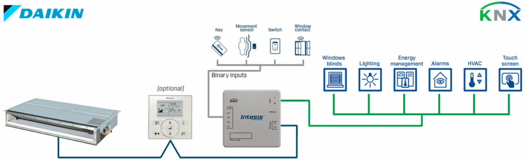 • Smooth integration of KNX thermostats allowing the control of the AC unit by the own temperature sensor of the thermostat.