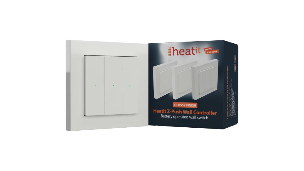 Nástěnný ovladač Heatit Z-Push je bezdrátový nástěnný ovladač Z-Wave. Má možnosti montáže pro 1, 2 nebo 3 kolébkové ovladače, což umožňuje snadnou a praktickou správu vašich produktů Z-Wave. Spínač lze nastavit pro ovládání scénářů nebo pro spolupráci s dalšími produkty Z-Wave. Každý kolébkový spínač je vybaven dvoubarevnou LED diodou pro indikaci činnosti tlačítek.