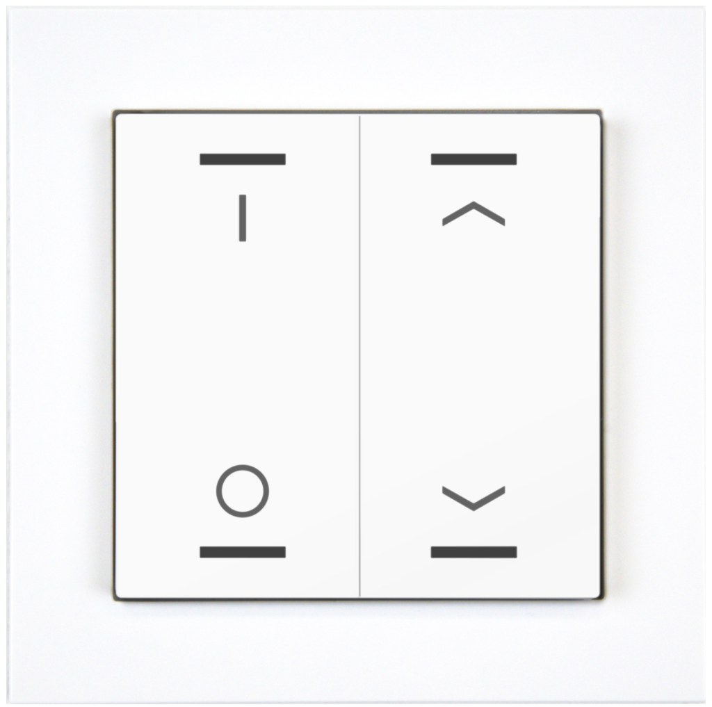 KNX vypínač pro standardní rámečky 55x55 mm. Kvalitní mikrospínače a indikační barevné LED (RGBW).