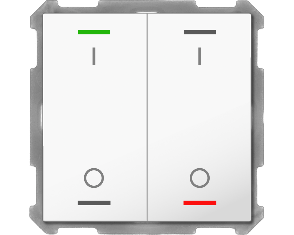 KNX vypínač pro rámečky 63x63 mm. Kvalitní mikrospínače a indikační barevné LED (RGBW).