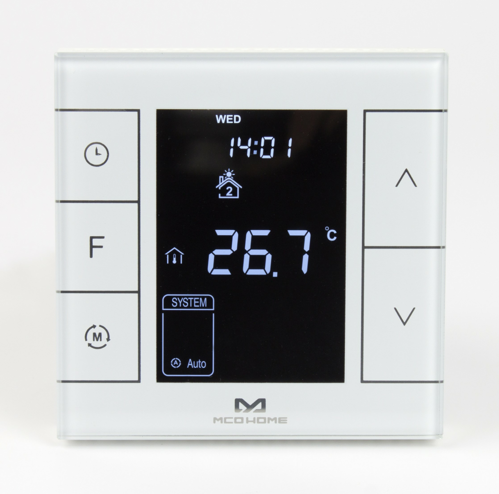 MCOHome Termostat pro el. topení V2 vč. čidla, Z-Wave Plus, bílý