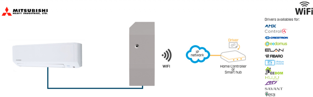 The Mitsubishi Heavy Industries-ASCII gateway allows a complete and natural integration of Mitsubishi Heavy Industries Domestic Air Conditioner units into IP based Home Automation Sytems.
