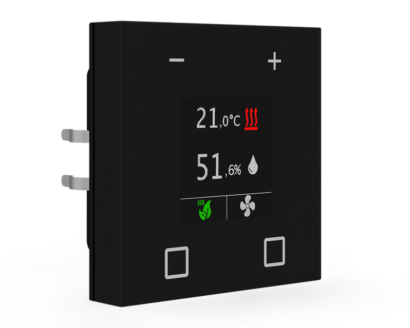 KNX termostat s displejem, 55x55 mm, čidlo teploty a vlhkosti, matná černá