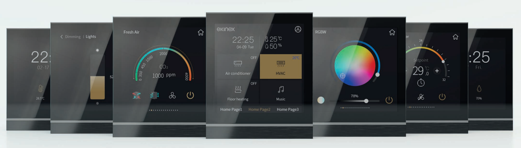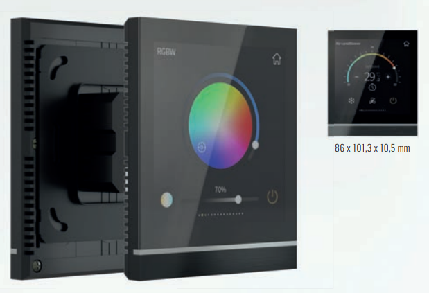 Displej KNX Touch&Control 4'' je navržen tak, aby jej bylo možné integrovat do každé budovy, a představuje dokonalou kombinaci designu a technologie.  Displej poskytuje uživatelům širokou škálu funkcí KNX umožňujících ovládání jedné nebo více místností. Zařízení je vybaveno LED diodou, kterou lze použít pro noční orientaci nebo pro informování uživatelů o případných alarmech, což v kombinaci s integrovaným snímačem přiblížení umožňuje automatické zapnutí nebo vypnutí displeje. Pro každý typ automatizace je k dispozici speciální widget: světla, stmívače, RGB, RGBW, žaluzie, audio řešení, klimatizace, kvalita vzduchu a 4 zóny regulace teploty jsou jen některé z funkcí integrovaných v tomto displeji.