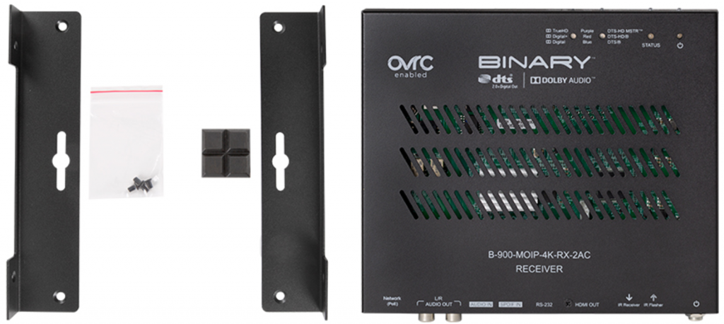 Přijímače Binary™ řady 900 4K Media over IP vytvářejí po spojení do systému s vysílači MoIP (B-900-MOIP-4K-TX nebo B-900-MOIP-4K-TX-RAC) a jedním ovladačem MoIP vysoce škálovatelný, flexibilní systém distribuce médií přes IP, který poskytuje vizuálně bezeztrátové video 4K HDR (HDR 30 Hz a kompatibilní s HDCP 2.2). Tato konfigurace, která funguje na nákladově efektivním gigabitovém přepínači PoE na 2. vrstvě, je nejrychlejší a nejjednodušší na trhu. Navíc díky funkci Audio Downmixing a nastavení synchronizace zvuku rtů budete mít k dispozici maximální flexibilitu zvuku. Vzdálená správa OvrC navíc umožňuje rychlé nastavení systému, snadné řešení problémů s přístupem k živým snímkům obrazovky zdrojového streamu a rychlé a jednoduché aktualizace firmwaru. Přijímače MoIP obsahují také integrovaný škálovač videa, který umožňuje distribuovat zdrojový obsah 4K současně na displeje 4K i 1080p, a navíc umožňuje přerušení zvuku. A konečně, ovladače RS-232, IR a IP pro populární řídicí systémy poskytují obrovskou flexibilitu při návrhu systému.