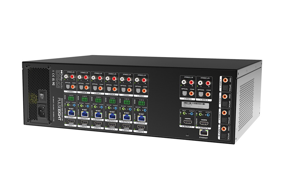 Pulse-Eight disponuje největší knihovnou příkazových kódů CEC v oboru, což vede k bezproblémové integraci s nejběžnějšími zdroji a displeji. Integrace se systémem Control4 je zjednodušena díky integrovanému SDDP a vlastním funkcím pro lepší použitelnost. A díky IR přes IP a portům micro Phoenix umožňujícím rozšíření řídicích kanálů RS232 pro každý výstup HDBaseT poskytuje Pulse-Eight spolehlivou integraci řídicího systému při každé instalaci.