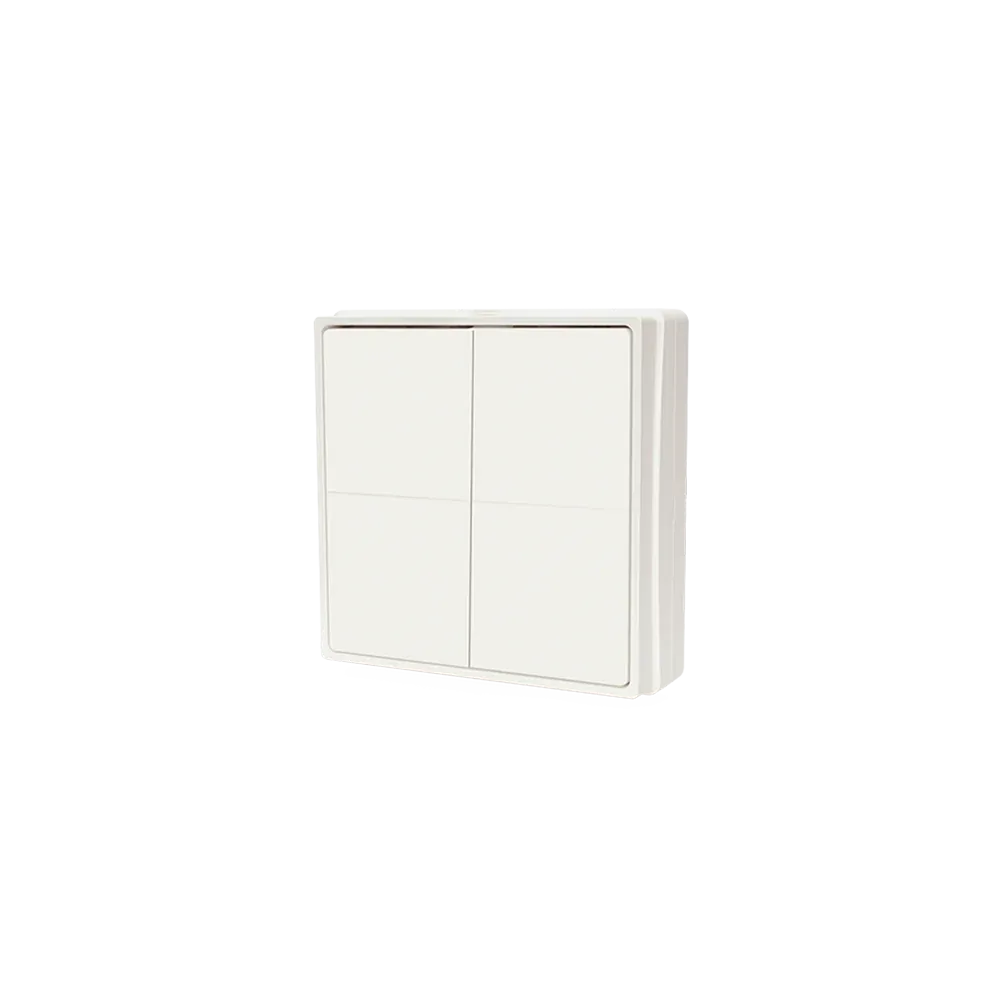 Nástěnný spínač Shelly BLU 4 ( zařízení) je chytré čtyřtlačítkové ovládací rozhraní Bluetooth. Lze jej bezproblémově namontovat s různými standardními řadami vypínačů. Lze jej také použít jako samostatný dálkový ovladač. Zařízení se vyznačuje dlouhou výdrží baterie, podporuje více kliknutí a silné šifrování.