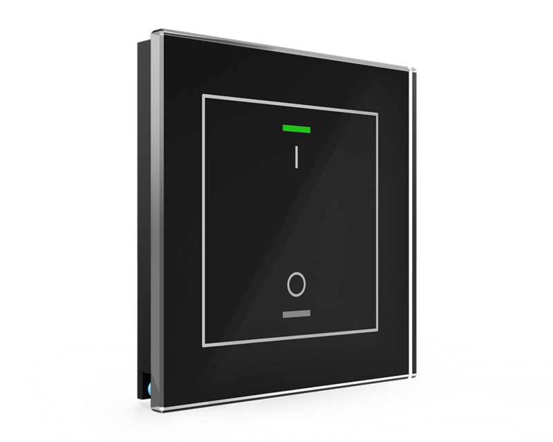 Skleněné KNX 2tlačítko, RGBW LED, potisk 0/1, černá, měření teploty