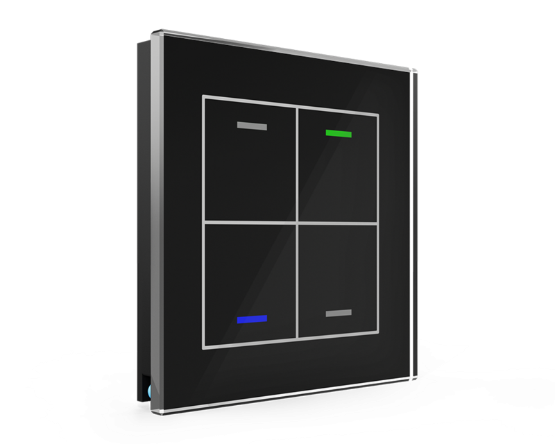 Skleněné KNX 4tlačítko, RGBW LED, černá, měření teploty