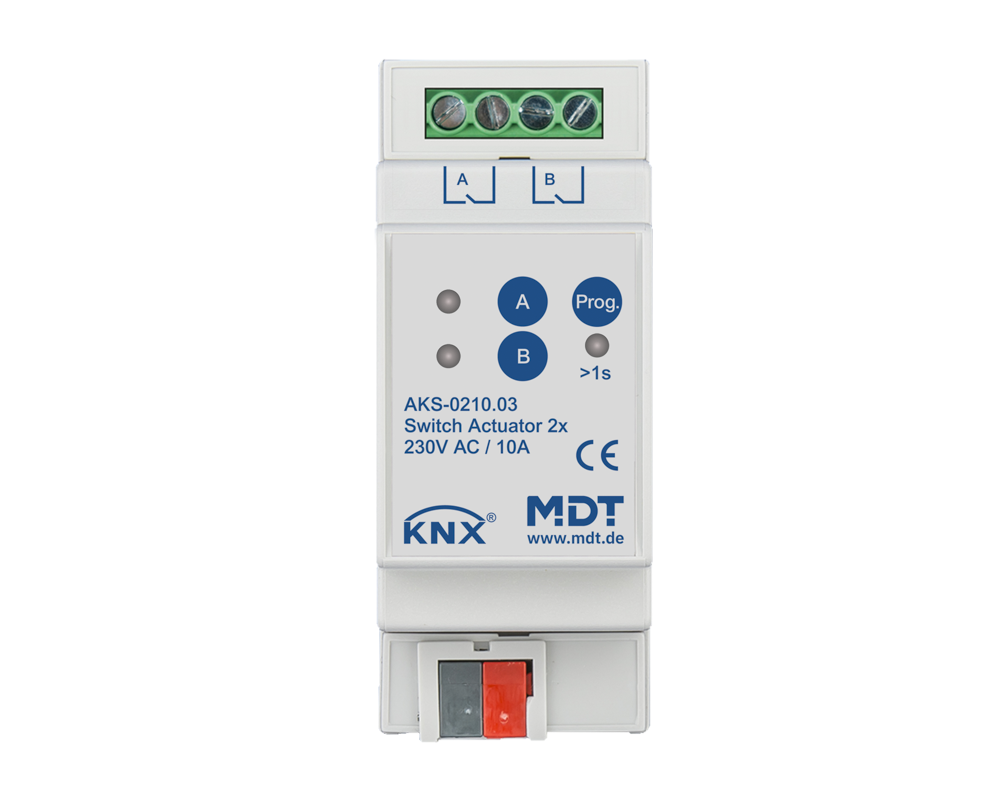 Standardní verze spínacího aktoru MDT AKS 10 A je vybavena velkým rozsahem funkcí pro malá zatížení a nabízí více kanálů při menších nárocích na prostor. Tím se šetří náklady na kanál a na dílčí rozvody. Akční člen je vybaven bistabilními relé pro proudy do 10 A a vysoké zatížení C až 140 µF. Každý kanál lze spínat přímo na aktuátoru pomocí tlačítka.