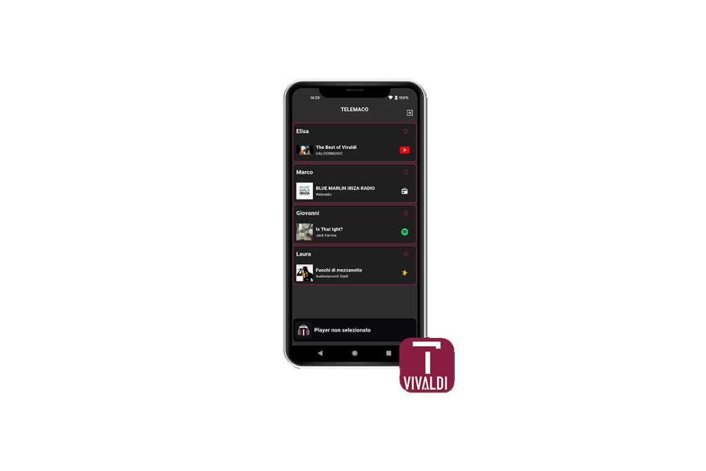 - Speciální ovládací aplikace (Vivaldi Telemaco)