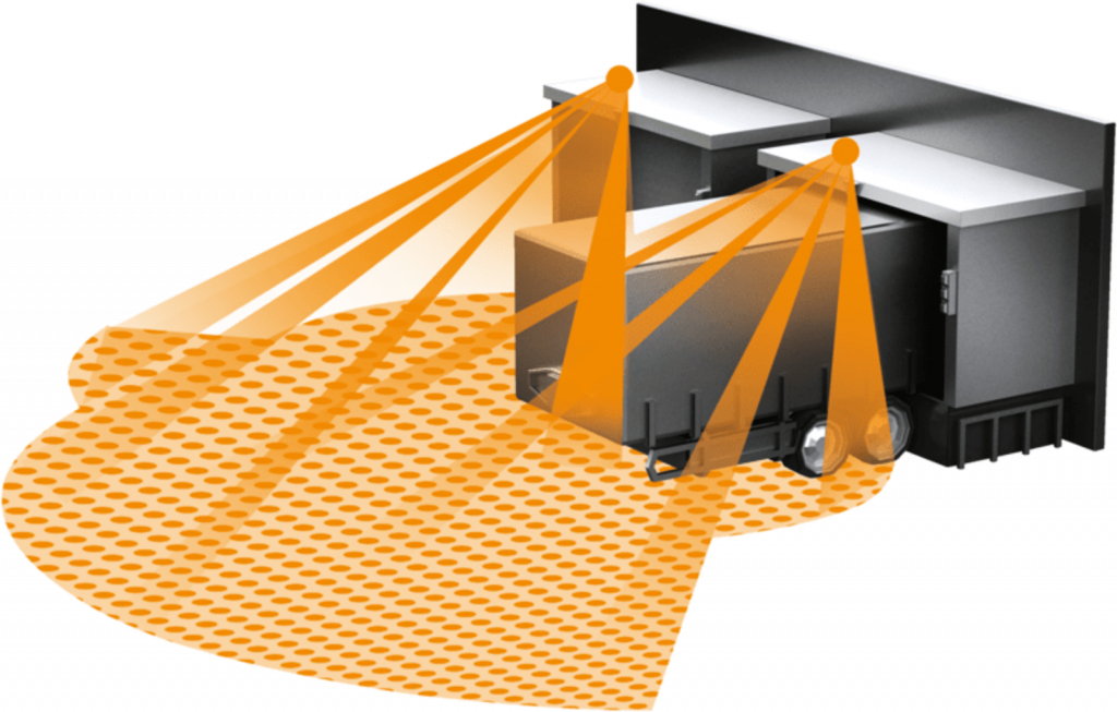 Pro vnitřní i venkovní použití, ideální pro vchody do budov, nákladové prostory, pro montáž do výšky 5 m, čtyřnásobný systém senzorů pro optimální dohled v úhlu pokrytí 3x100°, dosah 20 m (tangenciální).