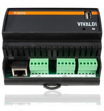 Stereofonní výstup pro výkonová rozšíření Vivaldi MULTIMEDIA E30S, Vivaldi MULTIMEDIA E80S nebo výkonové zesilovače Vivaldi Ulisse Line při 8Ω nebo 100V.