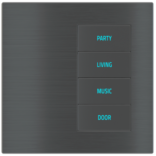 Čtyřnásobné tlačítko řady Ekinex® 20venti se používá k ovládání zapnutí/vypnutí užitkových zařízení, stmívání svítidel, ovládání motorických pohonů rolet nebo jiných programovatelných řídicích funkcí. Díky integrovanému teplotnímu čidlu může tlačítko fungovat jako regulátor teploty v místnosti nebo zóně. RGB LED pro každé tlačítko. Spínač má integrovaný komunikační modul sběrnice KNX a je určen k instalaci do krabice pro zapuštěnou montáž do zdi.
