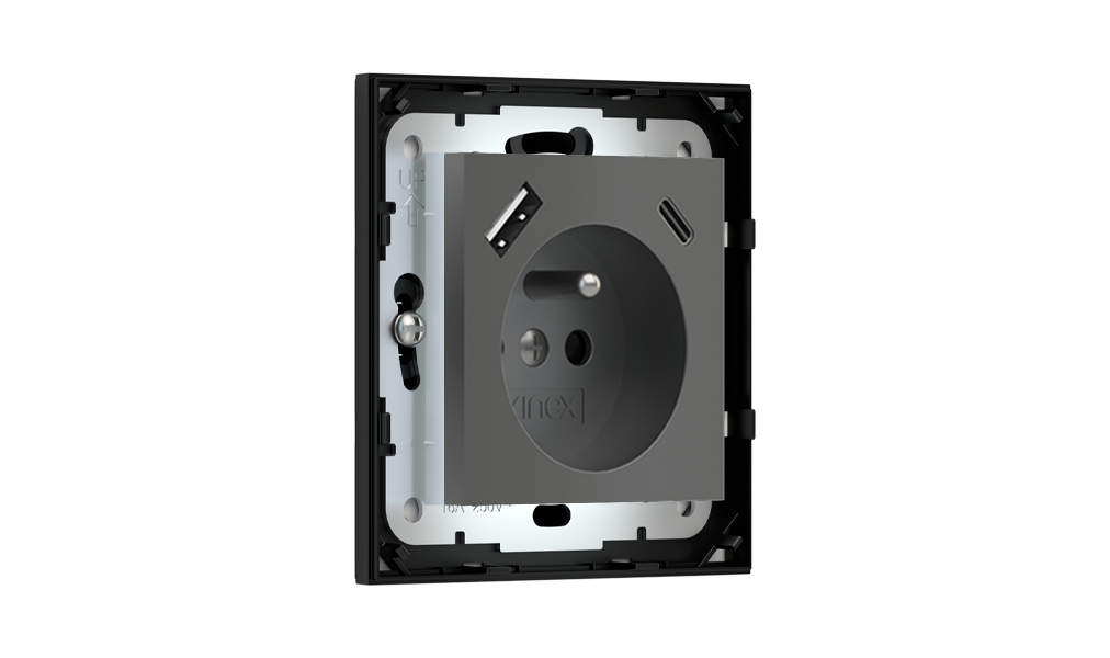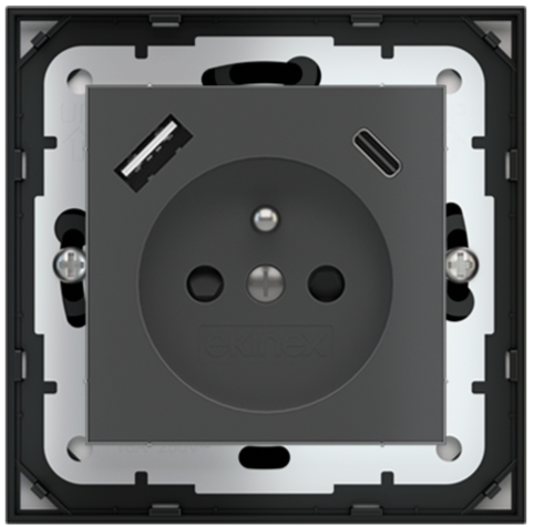 Francouzská/belgická standardní zásuvka Ekinex EK-PWS-FR-USB je nástěnné zařízení typu E pro napájení domácích spotřebičů do max. 16 A 250 V ~.